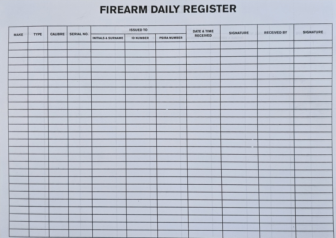 Security Management Firearm Register – 200 Page – A4 Landscape